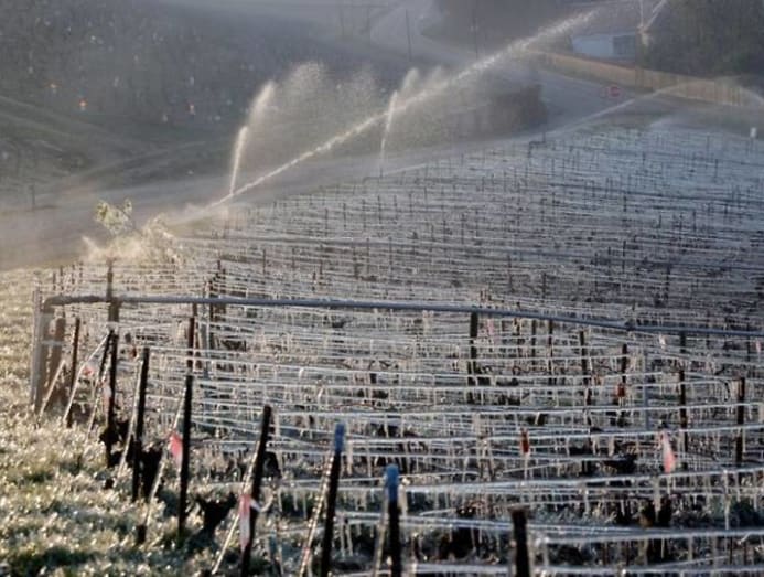 Winemakers also put out smouldering harbinger bales to provide a smokescreen to prevent the early sun from burning frozen shoots; sprayed water over the vines with the aim that the ice that forms protects them from freezing; and installed heaters and wind towers that mix the cold air about the ground with warmer air above.